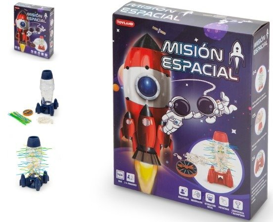 Nombre: Misión Espacial - Incluye: 30 astronautas, 30 palillos, 1 rueda con puntero giratorio, 1 cabeza de cohete, 1 cuerpo de cohete y 1 base de cohete - Medida del producto: 20,7 x 6,2 x 26,5 cm. - Tipo de Embalaje: Caja - Pilas: No - Material: Plastico - Edad minima recomendada: +4 Años - Cantidad de jugadores: 2 a 4 jugadores
