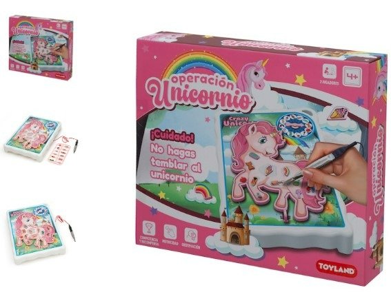 Salvando al Unicornio - Incluye: 1 Tablero de juego, 1 lámina de stickers, par de pinzas y 12 partes operables. - Medida del Embalaje: 48 x 30 x 5,5 cm. - Tipo de Embalaje: Caja - Pilas: 3 AA (no incluidas) - Material: Plastico - Edad minima recomendada: +4 Años - Cantidad de jugadores: