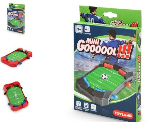 Nombre: Mini Gol - Incluye: 1 mini metegol - Medida del producto: 29 x 17 x 35,5 cm. - Tipo de Embalaje: Caja - Pilas: No - Material: Plastico - Edad minima recomendada: +3 Años - Cantidad de jugadores: 2 jugadores