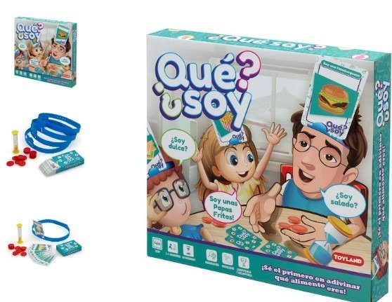 Nombre: Que Soy? Comida - Incluye: 1 temporizador, 4 vinchas, 20 fichas de puntuación y 54 cartas - Medida: 27 x 26 x 4 cm - Tipo de Embalaje: Caja - Pilas: No - Material: Plastico - Cantidad de jugadores: 2 a 4 jugadores - Edad recomendada: +4 año
