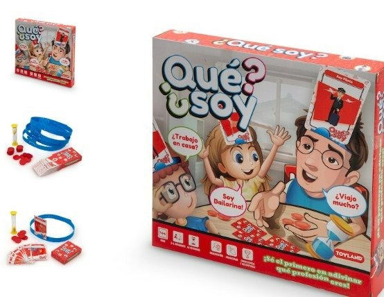Nombre: Que Soy? Profesiones - Incluye: 1 temporizador, 4 vinchas, 20 fichas de puntuación y 54 cartas - Medida: 27 x 26 x 4 cm - Tipo de Embalaje: Caja - Pilas: No - Material: Plastico - Cantidad de jugadores: 2 a 4 jugadores - Edad recomendada: +4 años