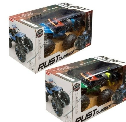 Nombre: Rust Climber - Incluye: 1 Auto 1:18, 1 Control Inalámbrico, 1 cable USB, 1 bateria de litio 3.7V, 1 destornillador. - Medida del producto: 21 cm largo x 12 cm ancho x 14,5 cm alto - Medida del Embalaje: 31 cm largo x 17 cm ancho x 16 cm alto - Tipo de Embalaje: Caja Visora - Pilas vehiculo: Bateria Li-ion 3.7V 500mAh recargable (Incluida) - Pilas Control: 2 pilas AA (no incluidas) - Material: Plastico - Frecuencia: 2.4 Ghz - Alcance: 10-15 metros - Edad minima recomendada: +6 año