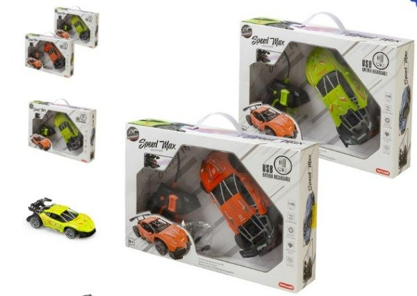 Nombre: Speed Max - Incluye: 1 Auto 1:18, 1 Control Inalámbrico, 1 cable USB, 1 bateria de litio 3.7V, 1 dosificador de agua para depósito, 1 destornillador - Medida del producto: 22 cm largo x 11 cm ancho x 6,5 cm alto - Medida del Embalaje: 37,5 cm largo x 26 cm ancho x 7,5 cm alto - Tipo de Embalaje: Caja Visora - Pilas vehiculo: Bateria Li-ion 3.7V 400mAh recargable (Incluida) - Pilas Control: 2 pilas AA (no incluidas) - Material: Plastico - Frecuencia: 27 Mhz - Alcance: 10-15 metros - Edad minima recomendada: +6 años